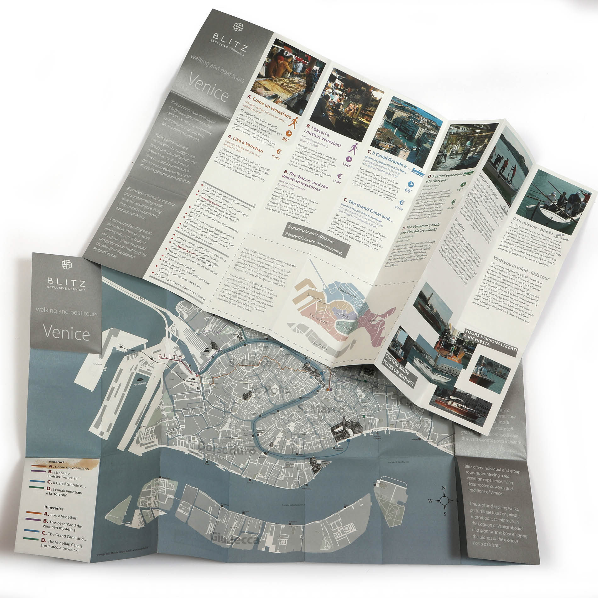 Progetto cartografie multiscala (planetarie, europee, nazionali) con forte specializzazione su Venezia e la laguna. Realizzo anche planimetrie e mappe di sicurezza per interni.